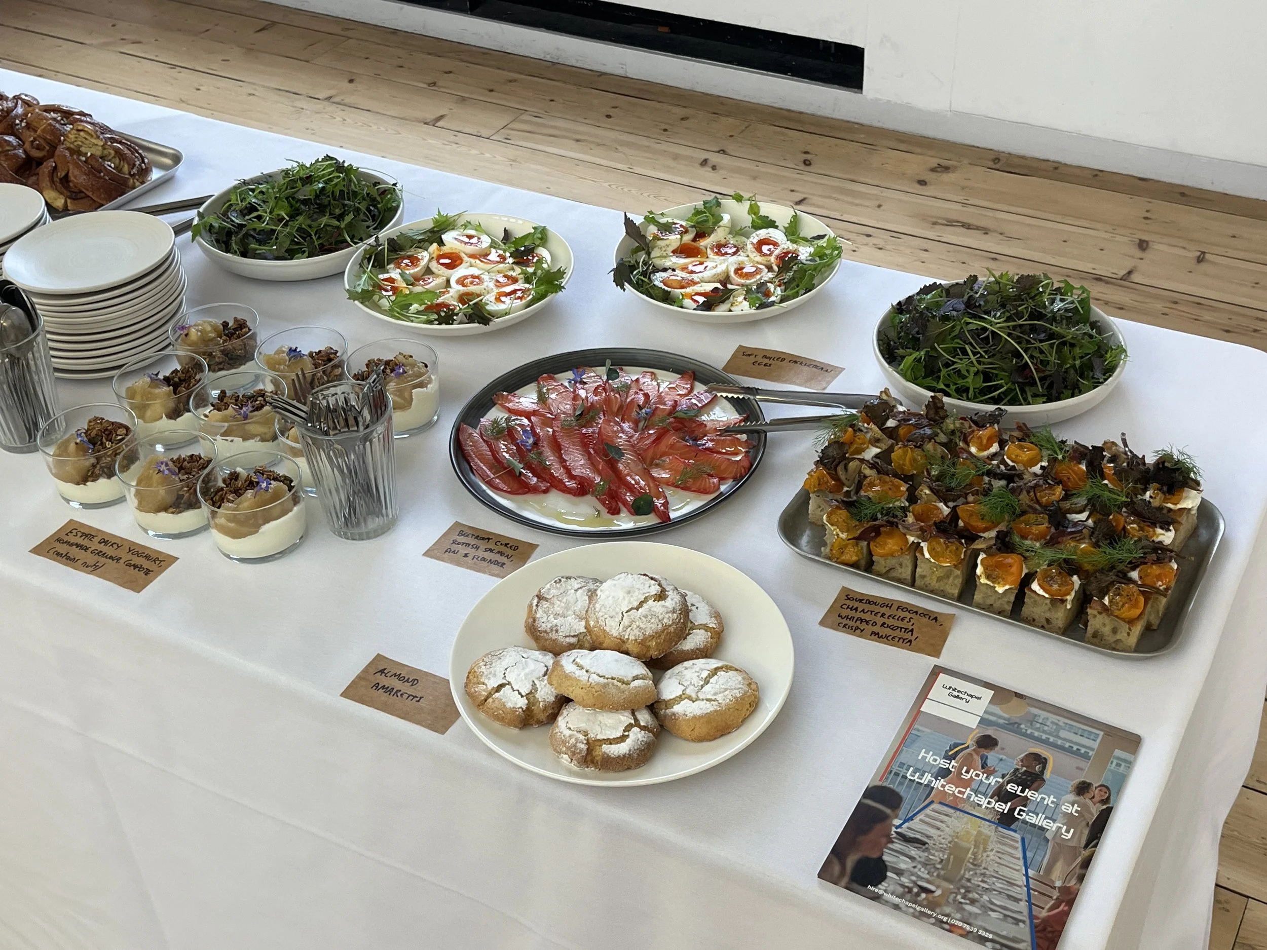 Alongside the café, we also offer event catering and private hosting. Whether you're planning something within Whitechapel Gallery or looking for seasonal, climate-friendly catering for your office or nearby event.